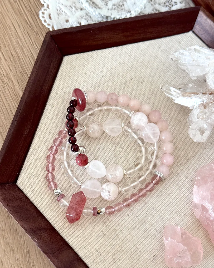 粉水晶 × 草莓晶 × 石榴石 × 雪花幽靈 × 白水晶 × 摩根石