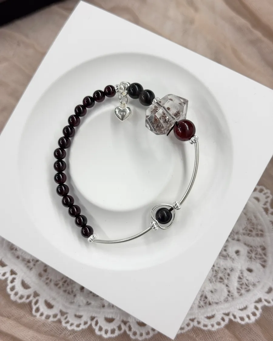 單尖紅幽靈 × 紅石榴石 × 灰曜石——這不是溫柔的組合,而是點燃內在力量的燃料包。紅幽靈喚醒潛藏的野心,石榴石注入行動與勇氣,灰曜石則穩住能量、守護界線。當你握住它,你會感受到:所有被壓抑的力量,開始蘇醒。